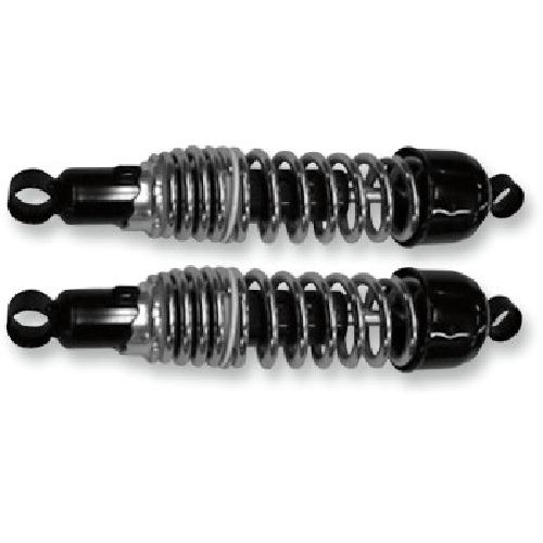 Feature a glossy black body and short upper shroud with dual chrome springs upper collar and stepped pre-load adjuster
