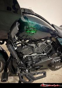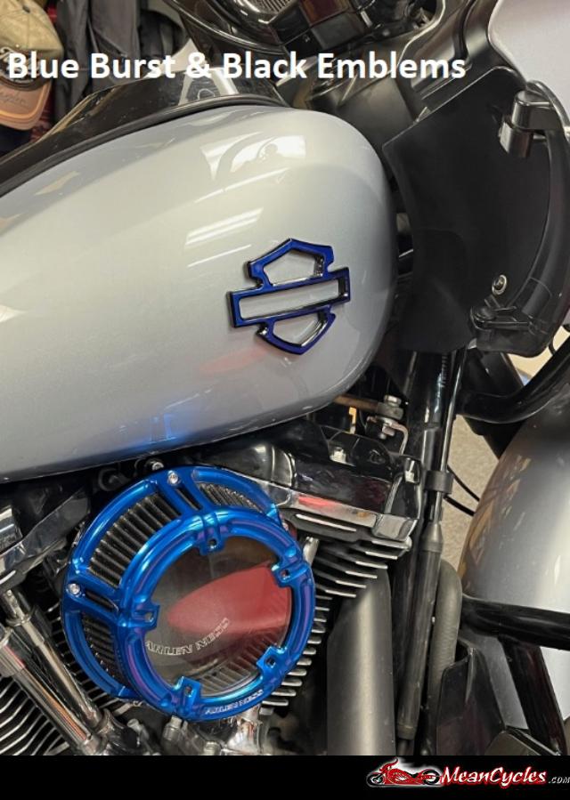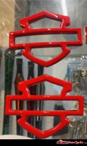 Gas tank emblems are curved to fit perfect but can also be made flat to be put anywhere on your bike like the back or the side of your saddlebags, also your truck or car..
