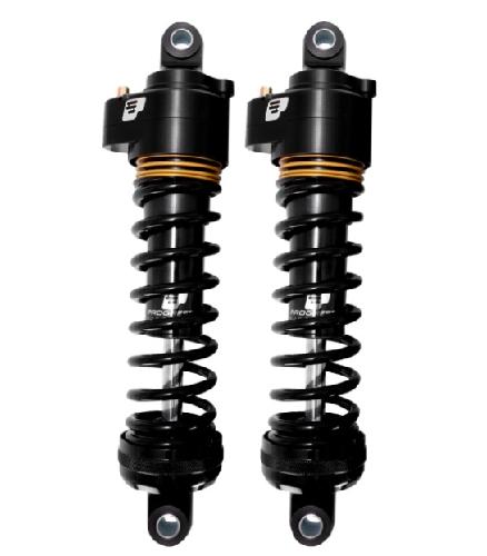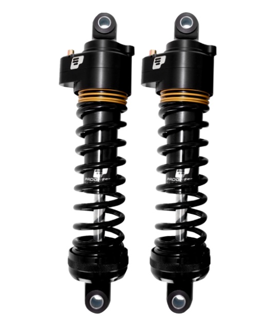Unique Ultra touring spring configuration provides the superb ride quality and suspension travel of a 13” shock but the custom lowered look of a 12” shock