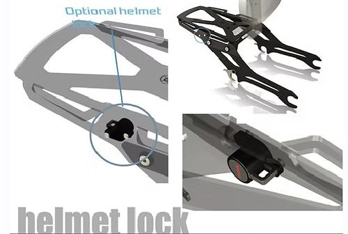Optional helmet lock for our racks with tamper proof hardware can be mounted to either side (or both) keeping in mind exhaust location.