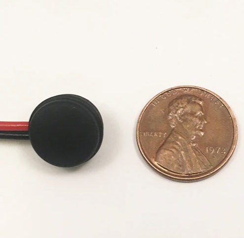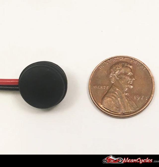 It measures only 1/2" in diameter and 1/4" tall and is completely encased in silicon, with a full 72" of bonded red/black 20G wire.