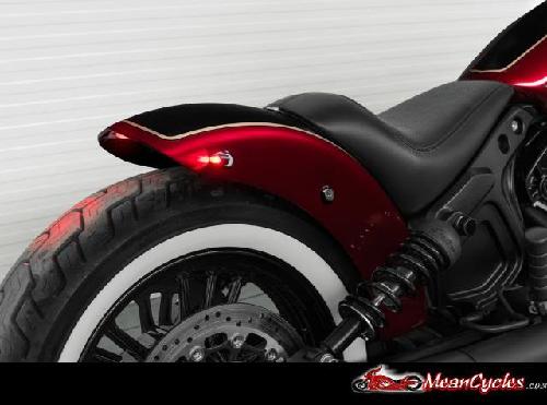 Inspired by modern aesthetics and edgy lines, the "Tomahawk" rear fender redefines the concept of style and design of your Indian Scout motorcycle. Fender has a special shortened metal frame to replace that long stock one. Complete with an integrated ECE-marked tail light, this fender offers a modern design and enhanced visibility on the road. Compatible with the OEM solo seat or specially built options from our shop.