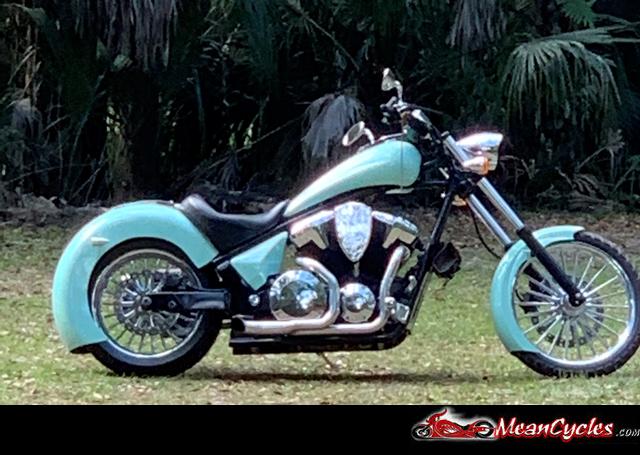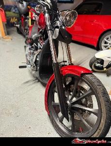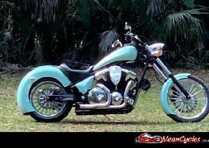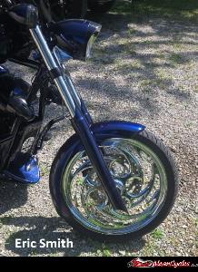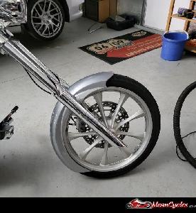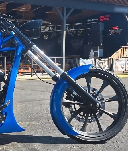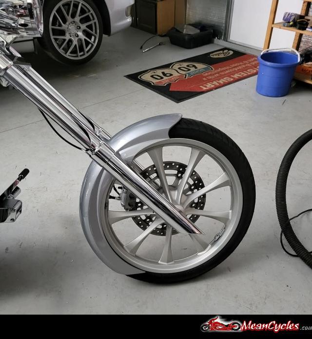 The Reaper front fender is shorter in the front and longer in the rear giving the front of the motorcycle a more raked look.