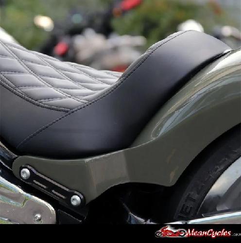 Solo seat is cut low and wide. Extra width in the hip area so you can ride low, look cool and still be comfortable at the end of the day's ride.