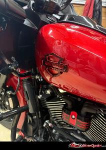 Gas tank emblems are curved to fit perfect but can also be made flat to be put anywhere on your bike like the back or the side of your saddlebags, also your truck or car..